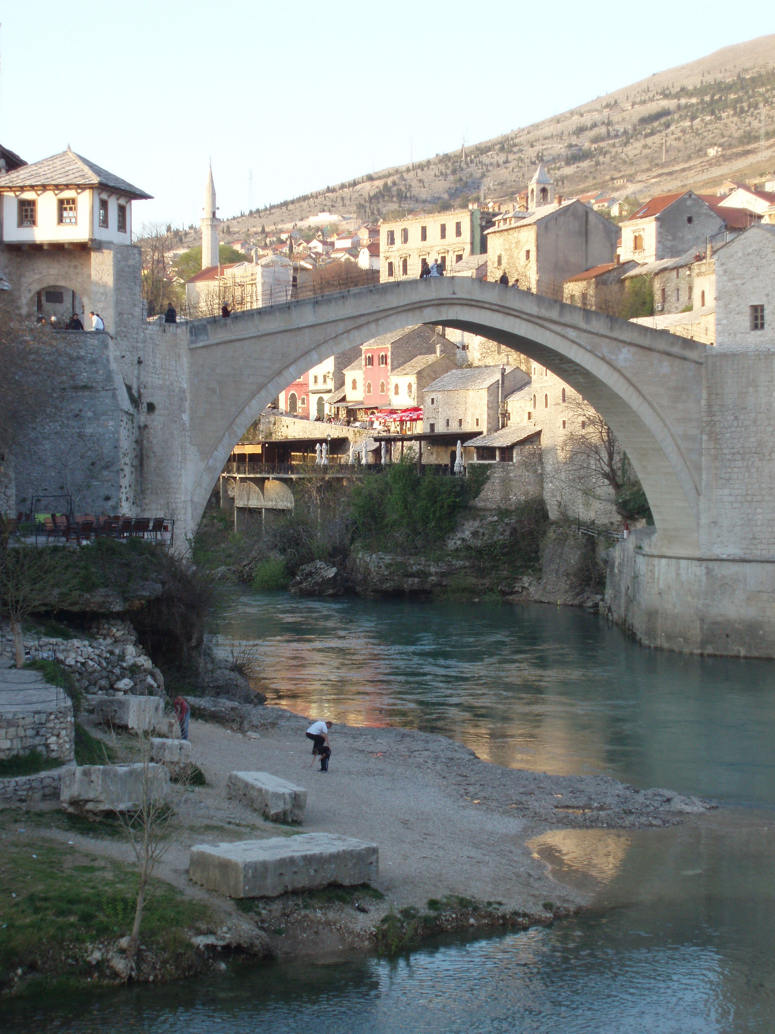 Mostar itself suffered greatly in the war. Structures that had stood for 500 years were blown apart or collapsed, including Stari Most, the medieval bridge across the Neretva River that is the symbol of Mostar and for which it was named (most means bridge, and mostar is a bridge-keeper). But, as in Sarajevo and other towns throughout the country, international aid and a strong desire to return to normal have made it possible to repair much of the visible damage.