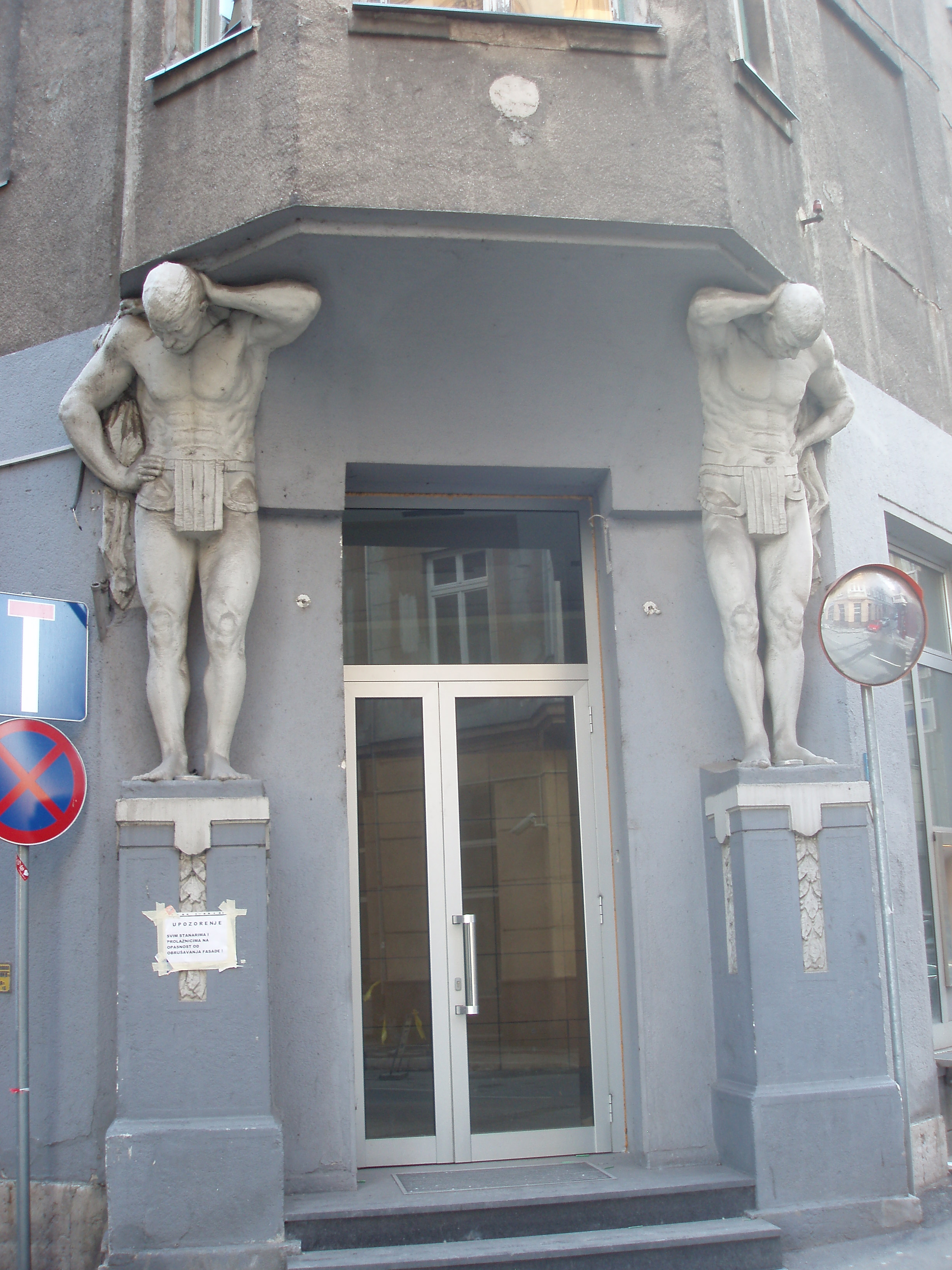 These fellows have been holding up the corner of the building next door to us for decades. No wonder their necks are sore.