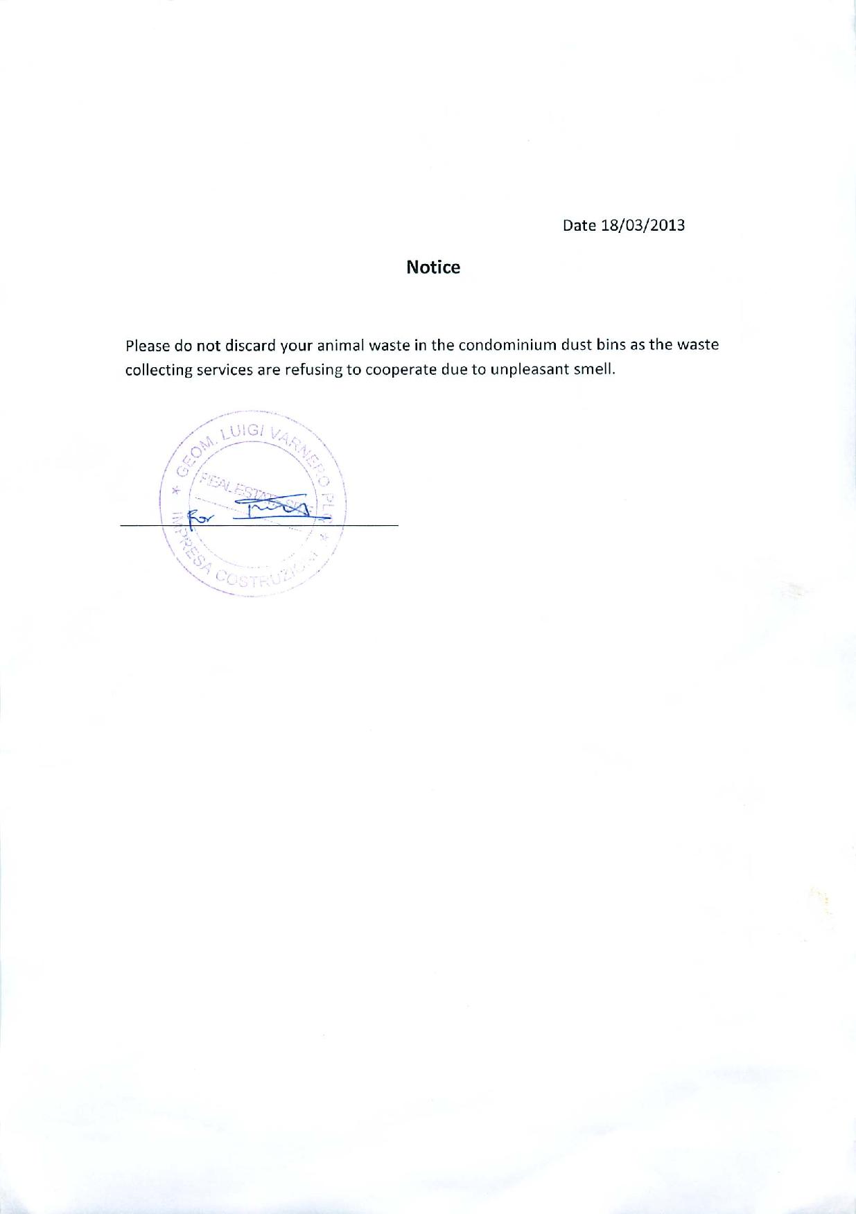 We came home one evening before spring break to find this official notice from the Varnero management on our dining room table.