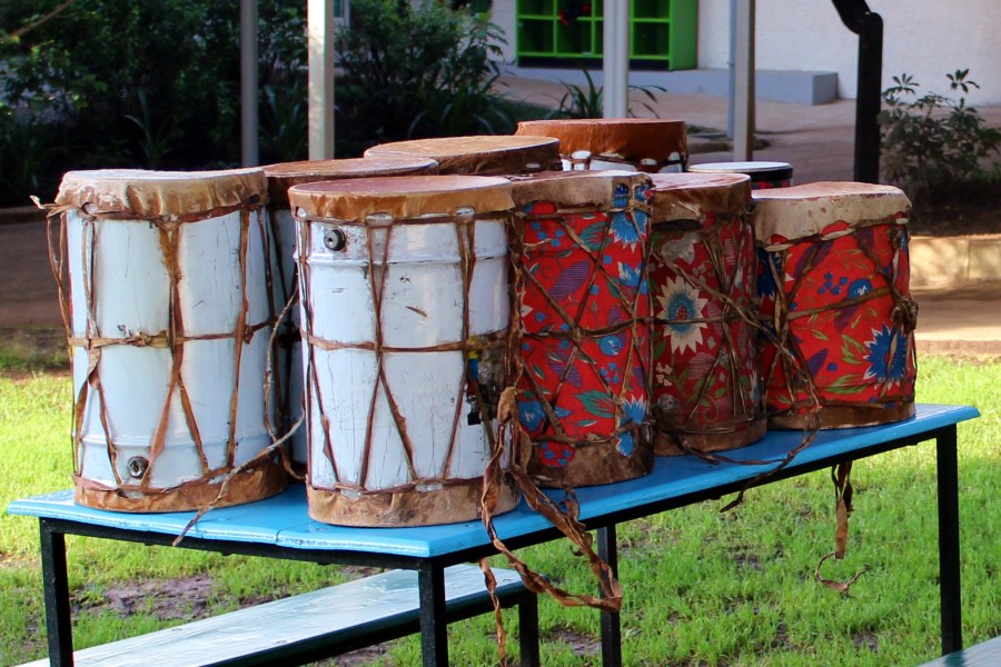 Ethiopian drums, ready for the student musical show.
