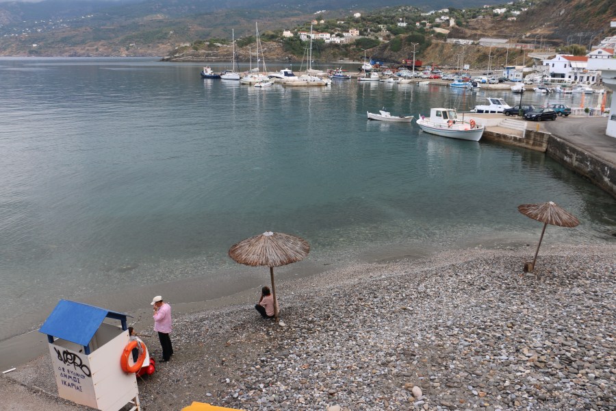 …of the tiny two-umbrella beach…