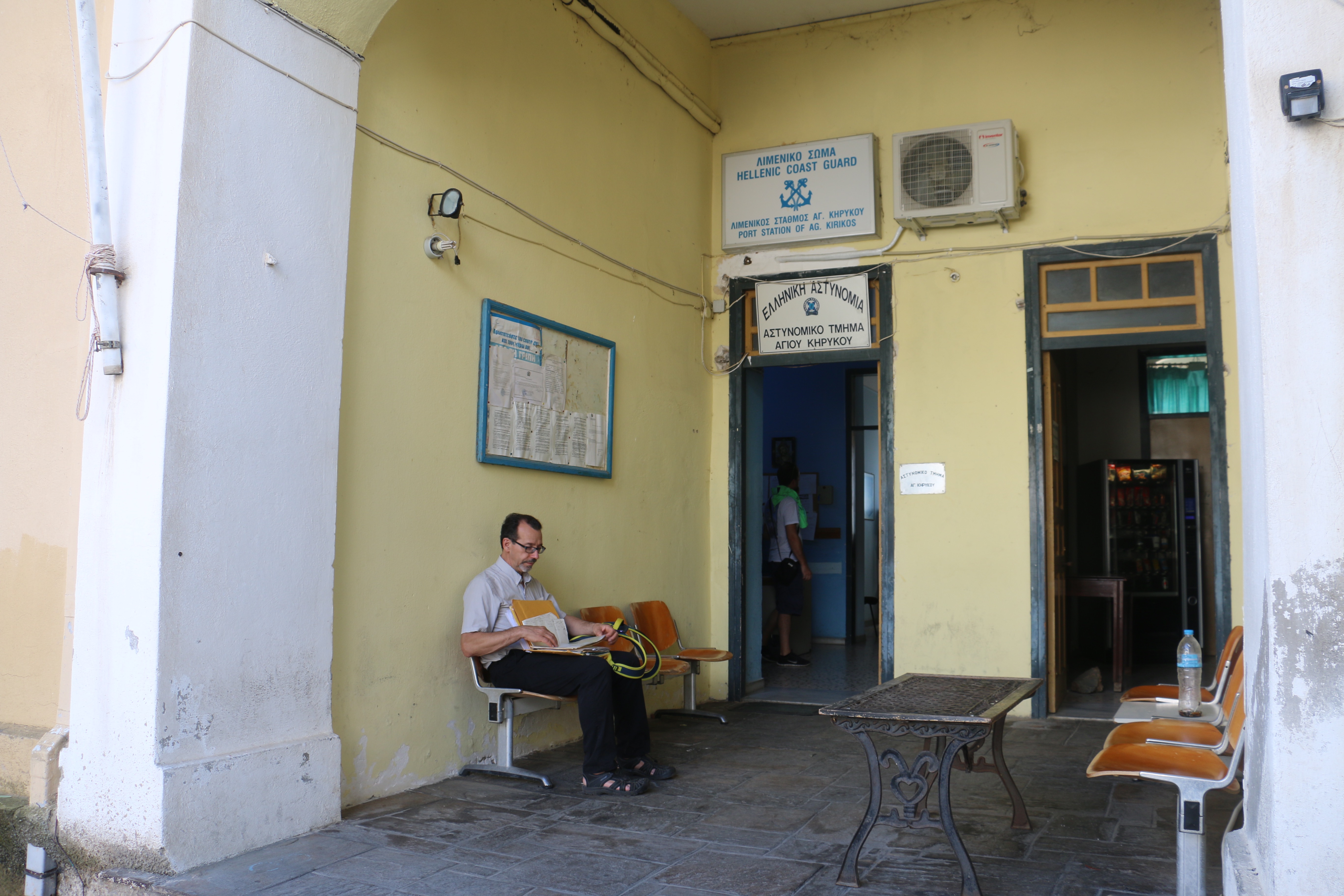 Waiting at the police station in Agios Kyriokos for the final step
