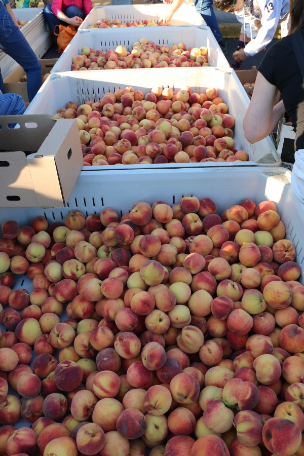Harry and David’s parking lot is filled with containers of near-perfect fruit