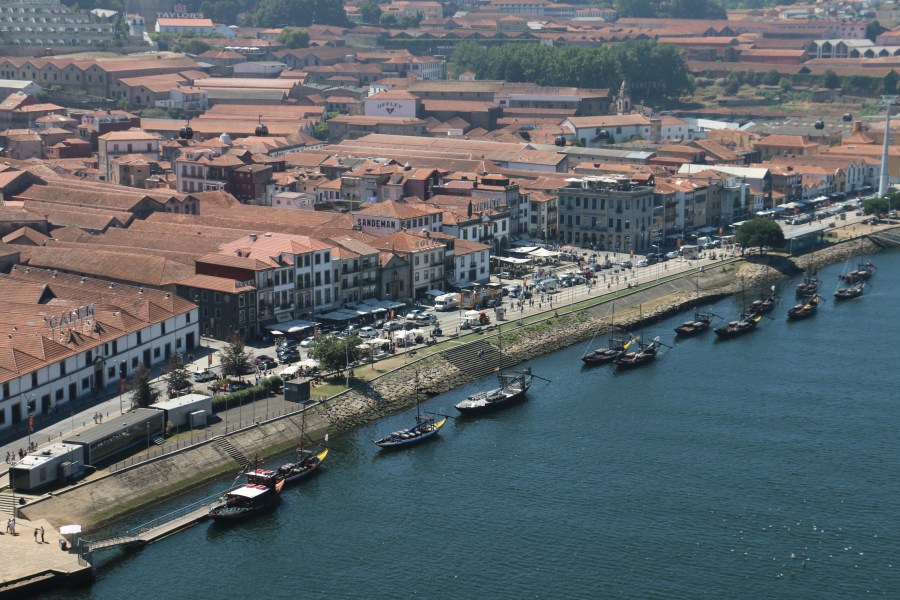 Gaia from the bridge. The boats are traditional ones for moving port on the river, now just for show.