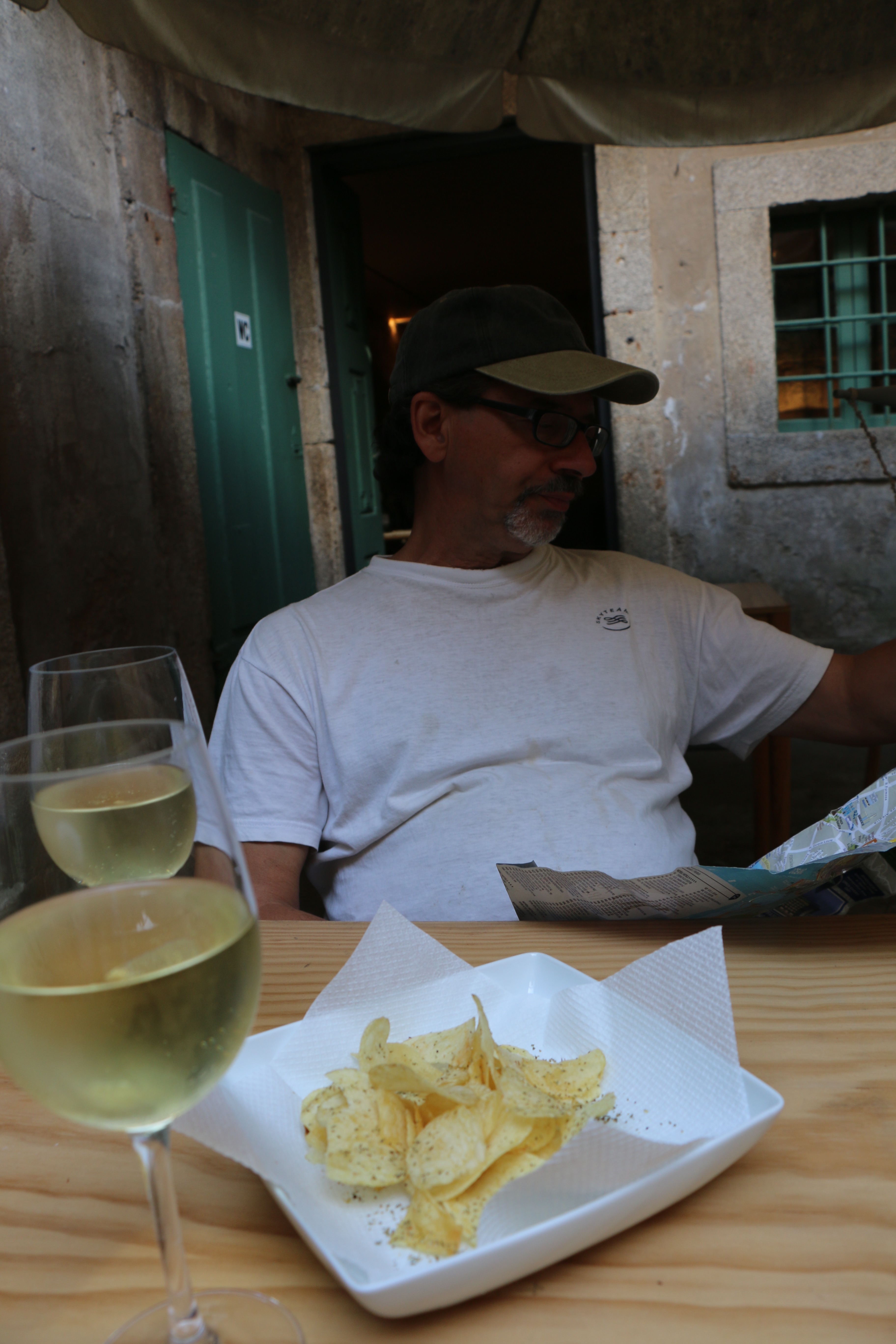 Homemade potato chips are a thing here, as is the slightly effervescent vinho verde