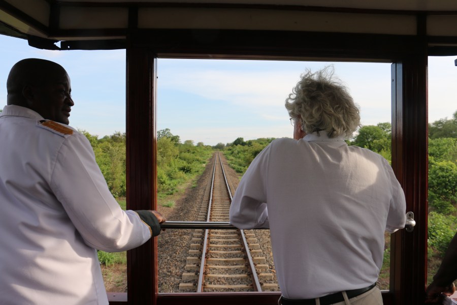 Our porter and a passenger enjoy the view from the observation car